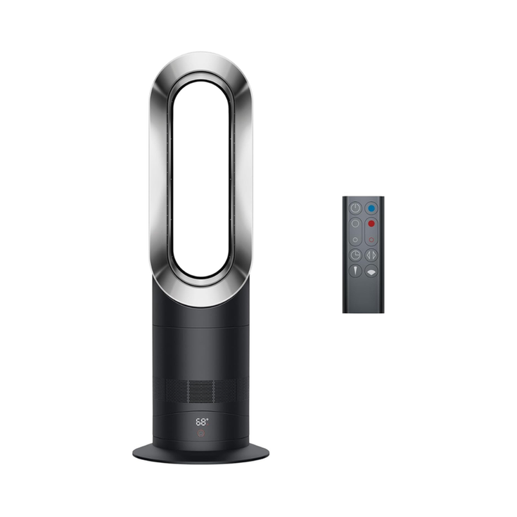 The Dyson AM09 Hot + Cool Fan Heater is a bladeless, dual-function appliance that provides both heating and cooling. It features Air Multiplier™ technology to project smooth, powerful airflow, and a ceramic heating element for rapid, energy-efficient warmth. The unit includes precise temperature control, oscillation for even room coverage, and an automatic shutoff for safety. Its bladeless design allows for easy cleaning and safe operation around children and pets.