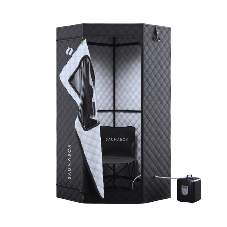 The SaunaBox SmartSteam Kit Pro is a portable steam sauna system designed for full-body relaxation and wellness in home settings. It uses rapid steam technology to produce therapeutic steam that can help with relaxation, circulation, and detoxification. The system includes a comfortable, foldable sauna tent with a chair and a steam generator with Bluetooth connectivity for app control of temperature and session duration. The kit is lightweight and easy to set up, and it collapses for compact storage when not in use. It is suitable for use after workouts or as part of a regular self-care routine.
